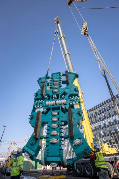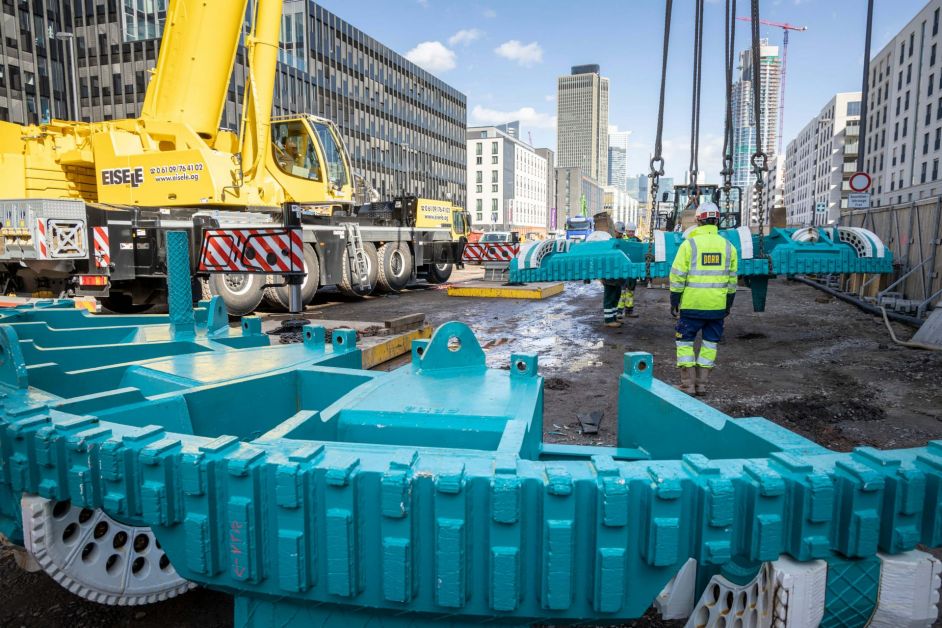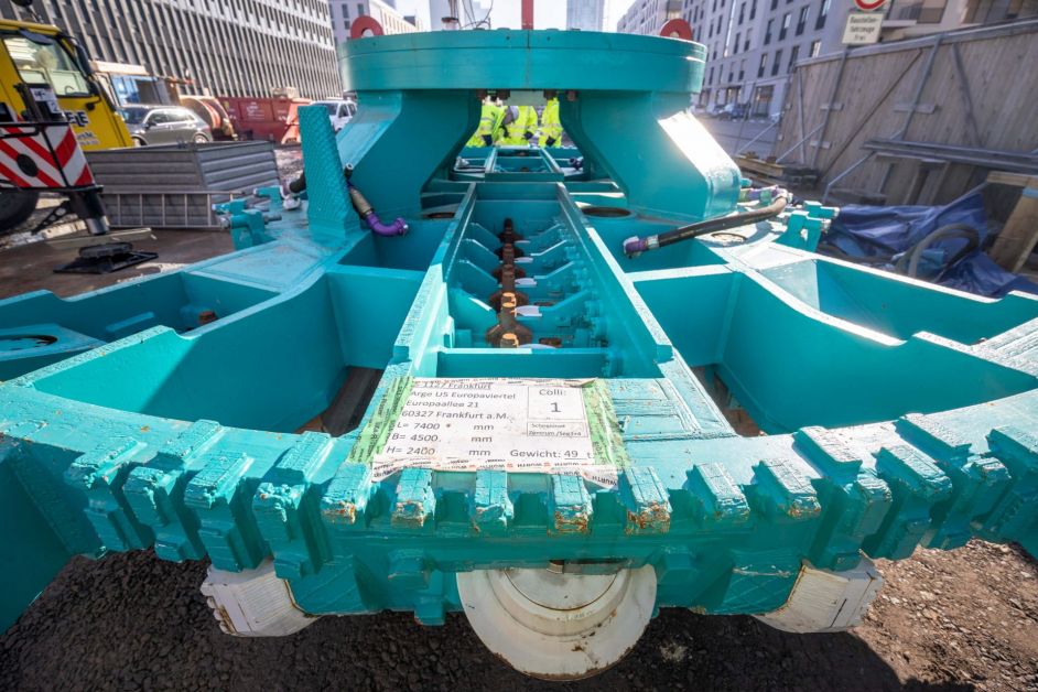 In der Nacht vom 18. auf den 19. März war das 7,1 Meter hohe und 49 Tonnen schwere Teil angekommen. Per Schwertransporter aus dem Herrenknecht-Werk in Schwanau in Südbaden. Das Unternehmen hat die TVM eigens für den Einsatz in Frankfurt entwickelt. Ein Unikat also und die erste vollautomatische Tunnelvortriebsmaschine in Frankfurt überhaupt.