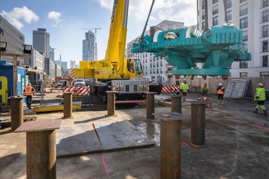 Die Grube, von der aus der Mammut-Bohrer starten wird, befindet sich im östlichen Bereich der Europa-Allee. Nach umfangreichen Kampfmittelsondierungsarbeiten startete im Januar der Aushub. Die erste Steifenlage wurde in sechs Metern Tiefe betoniert, die zweite in 13 Metern. Als nächstes werden weitere vier Meter ausgehoben und die Sohle ebenfalls betoniert. Die zweite Steifenlage wird im Anschluss zurückgebaut, bevor dann die TVM eingesetzt werden kann.